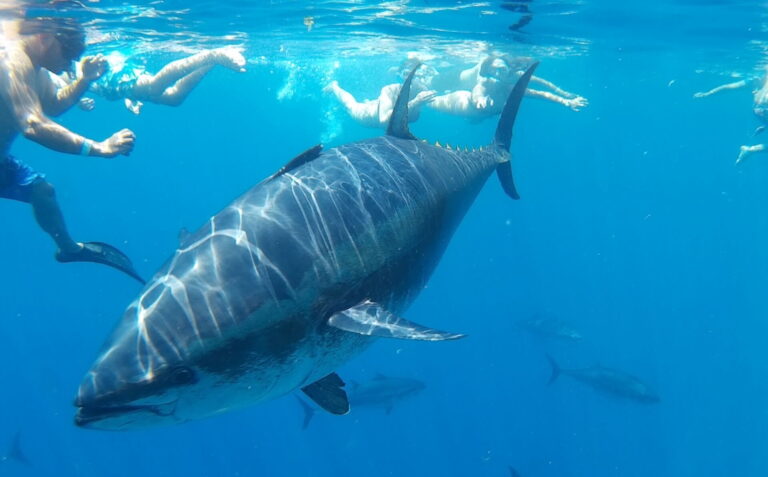 Un cop arribem a les piscifactories de tonyina vermella, el teu equip tindrà l’oportunitat de submergir-se i practicar snorkel entre aquestes increïbles criatures, gaudint d’una immersió que segur despertarà la sorpresa i la connexió amb la natura. Per tant aquesta activitat permet als participants sortir de la seva zona de confort i col·laborar en un entorn novedós i emocionant.