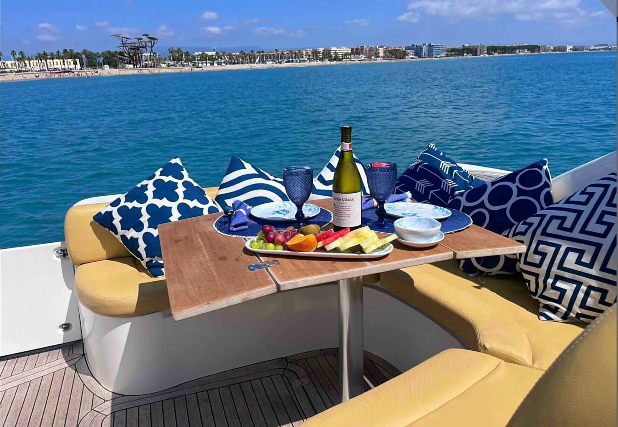 Anschließend nehmen wir Kurs auf den Strand von La Pineda, wo wir vor Anker gehen, um an Bord einen Snack zu genießen, uns zu sonnen und den Nachmittag zwischen Baden und Stille zu verbringen. Ein idealer Ort, um das Gefühl zu haben, dass die Zeit stillsteht.