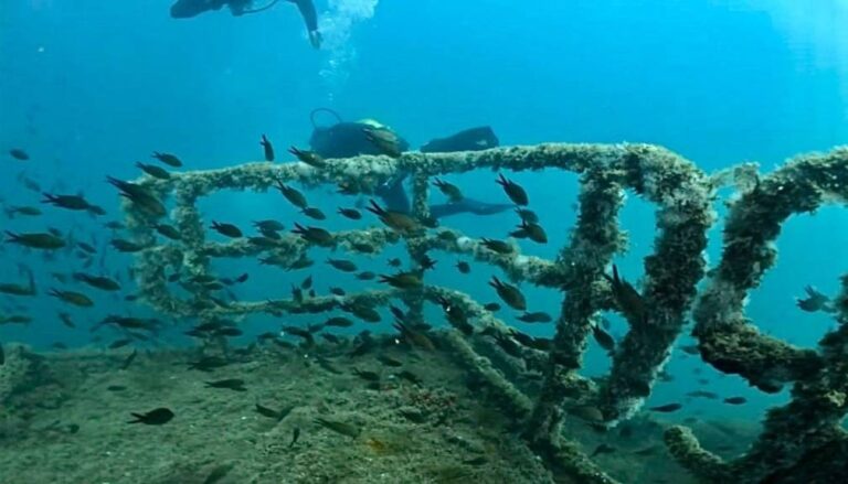 It is also an ideal place to get started in wreck diving. It is covered in corals, sponges, and other marine organisms and is home to a wide variety of fish, including pipefish, lobsters, sea hares, rays, octopuses, conger eels, groupers, and chestnuts.